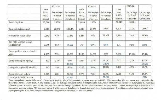 In 2014/15 PHSO received 6,920 parliamentary complaints. Of these, just 885 (12.7%) were investigated and a mere 323 (4.6%) upheld to some degree. 95% of the people who complained did so without just cause.