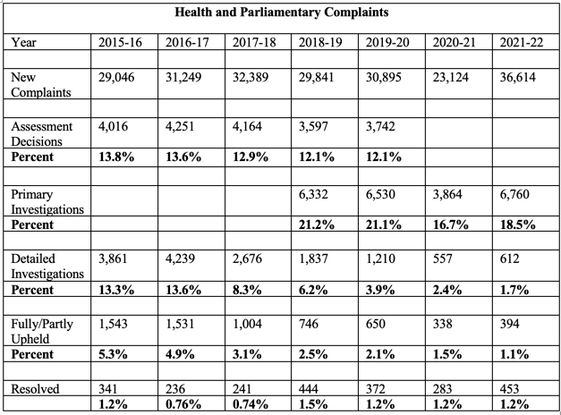 This data raises a valid debate with regard to the MP filter and Professor Thomas is surely the ideal person to identify the underlying cause. Could it be that a significant number of MPs see no value in submitting complaints to the Ombudsman? Given the very low investigation and uphold rate perhaps they are concerned about raising the expectations of their constituents. But academic research requires funding and that funding is usually via the Ombudsman’s budget. Whether peer review or research, if PHSO pays the bill they also call the tune.