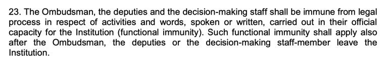 I wrote to Professor Robert Thomas on 25th November 2022 asking why the Peer Review considered the Ombudsman was fully consistent with the Venice Principle above.