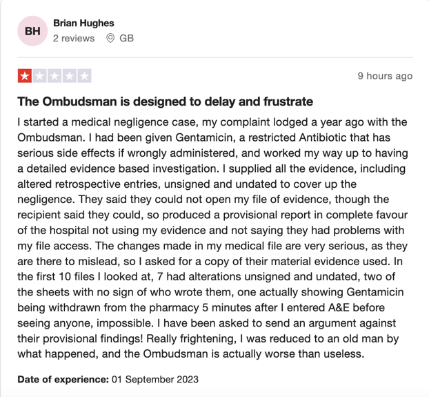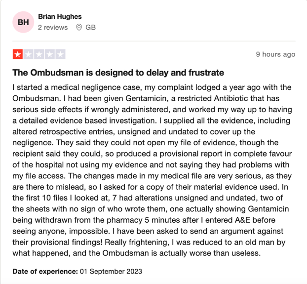 This report from Trust Pilot describes how PHSO caseworkers dismiss evidence from the complainant demonstrating that PHSO is part of the cover-up culture.