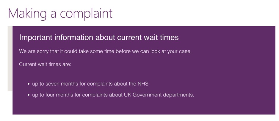 Good point. Once Amina gets to the front of the 7 month queue she will simply be told that her complaint is premature and to go back to the trust for resolution.