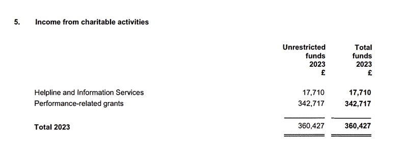 They also earn money from providing their helpline services and from ‘performance-related grants’.